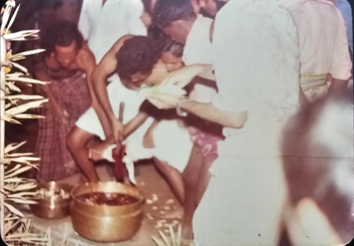 K.Muralidharan seeking blessings from Madathipathy